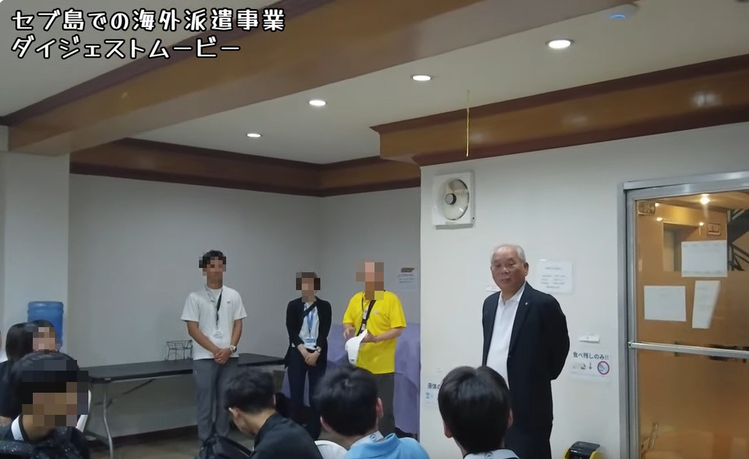 町の教育委員会に確認したところ、永原町長が中学生らの前に顔を出したのは、セブ島での活動初日となる19日のみ。中学生たちに話をして記念撮影しただけで、その後は姿を見せていなかったことを認めている(*下の画像は町の公式YouTubeチャンネルより)。