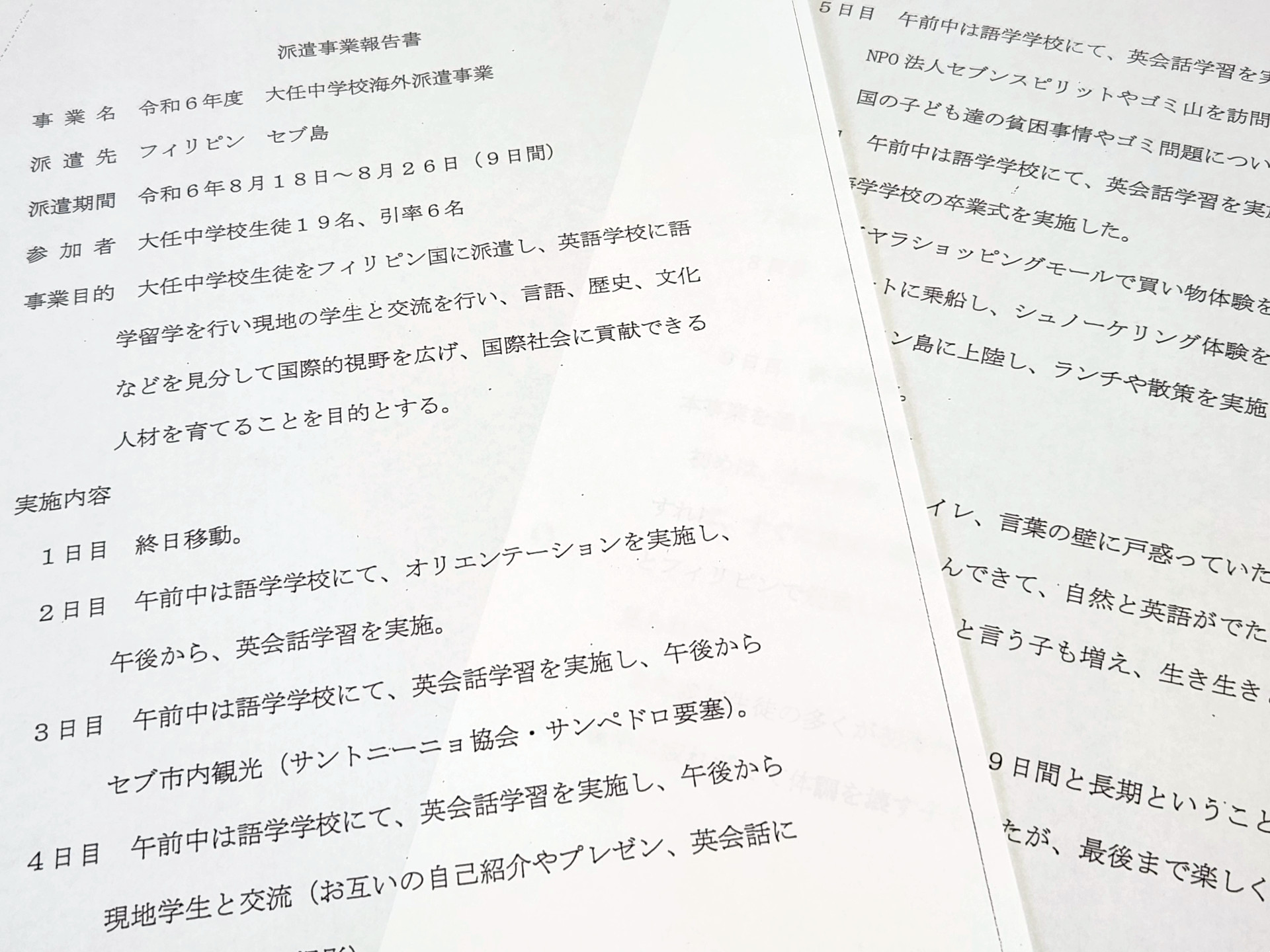 大任町教育委員会への情報公開請求で入手した資料によれば、中学生のセブ島派遣が実施されたのは昨年8月。英語学習や文化交流を通じて国際社会に貢献できる人材を育てる目的で、同月18日から26日まで9日間、町内の中学生19人に引率者6名を加えた25名を公費派遣していた。