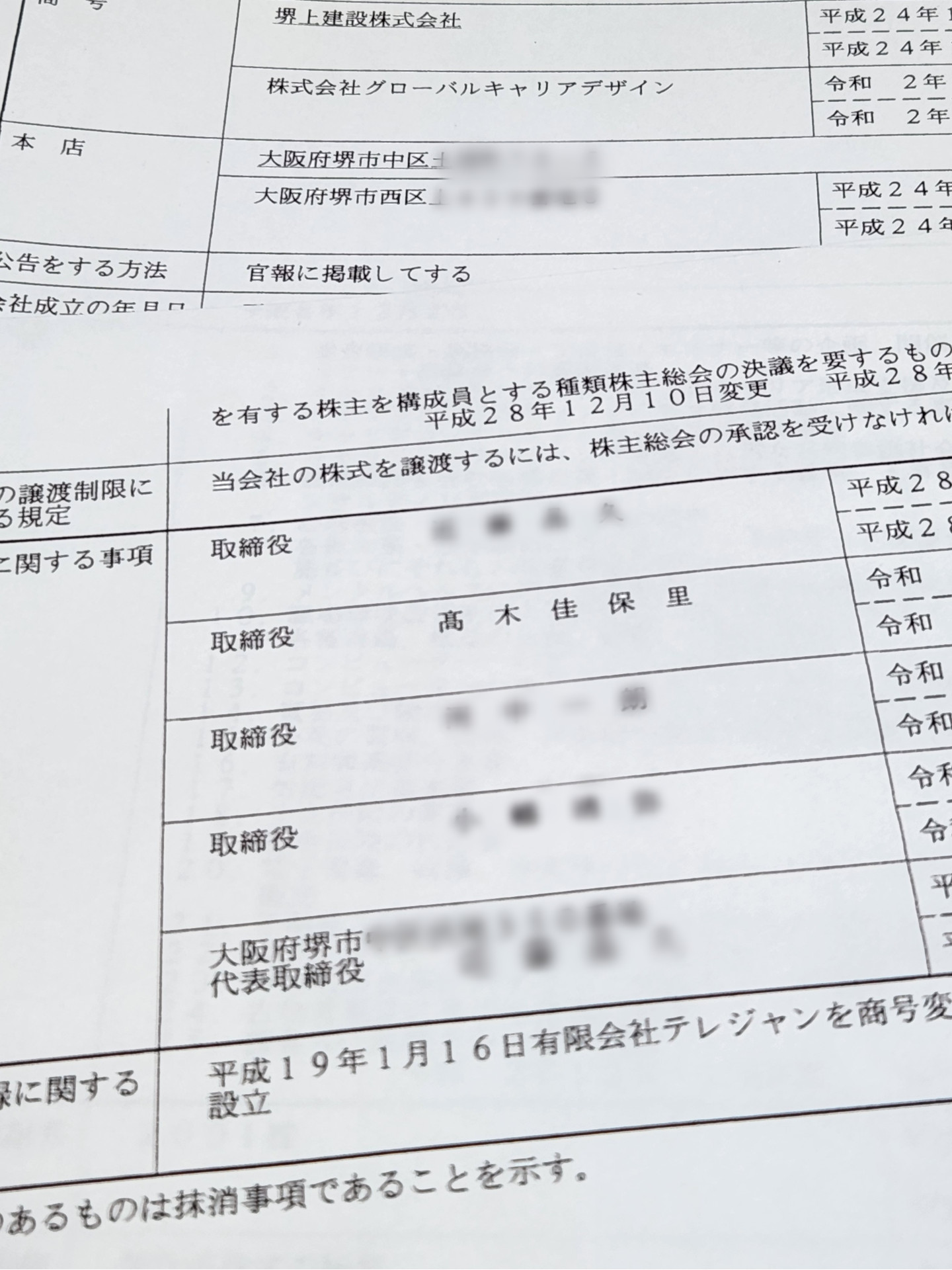 23年の第3支部報告書では、支出が134件ある中で、K氏関連の会社が62件と半分近くにのぼる。うち「グローバルキャリアデザイン」に段ボールケース代として134,640円、調査研究広報滞在費から18万円あまりを支払っていた。グローバルキャリアデザインの法人登記簿を確認したところ、同社の取締役に高木氏本人が就任している。