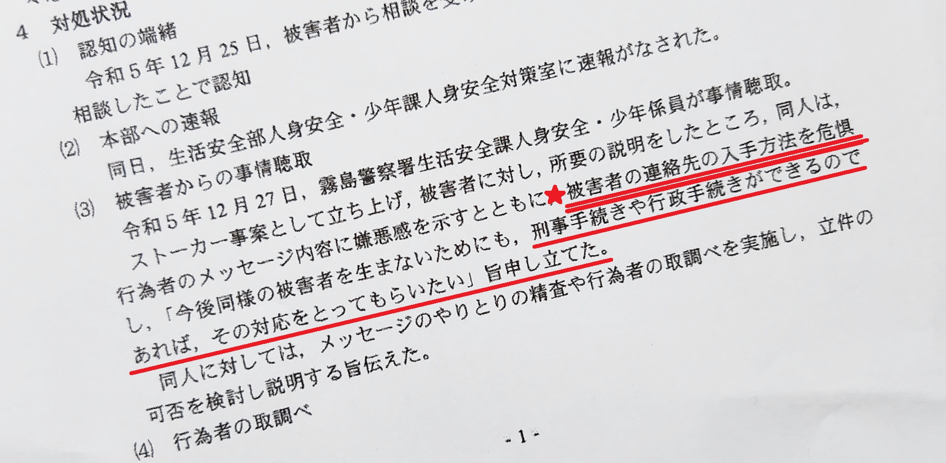 【追跡・鹿児島県警】霧島署員ストーカー事件、事件化阻止の実態|公益通報文書にあるアンダーラインの意味とは・・・