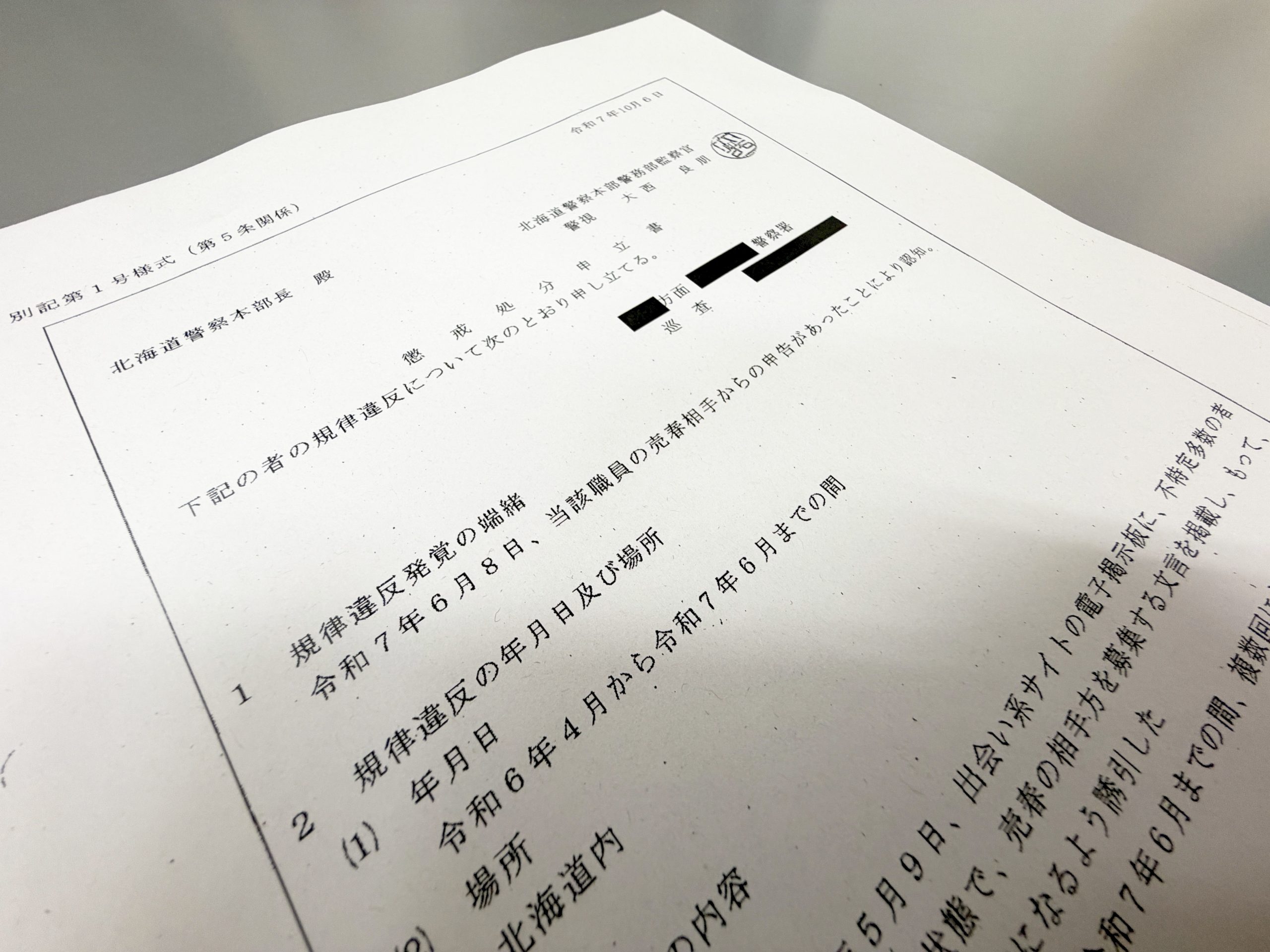 北海道警察が昨年の10月から12月までの3カ月間に行なった懲戒処分7件のうち、4件について報道発表が控えられていた可能性があることがわかった。未発表疑い事案の中には売春防止法違反や窃盗などの悪質な不祥事も含まれているが、いずれも「減給」や「戒告」などの軽い処分で済まされていた。筆者の情報公開請求で開示された公文書から各件の概要が確認できた。