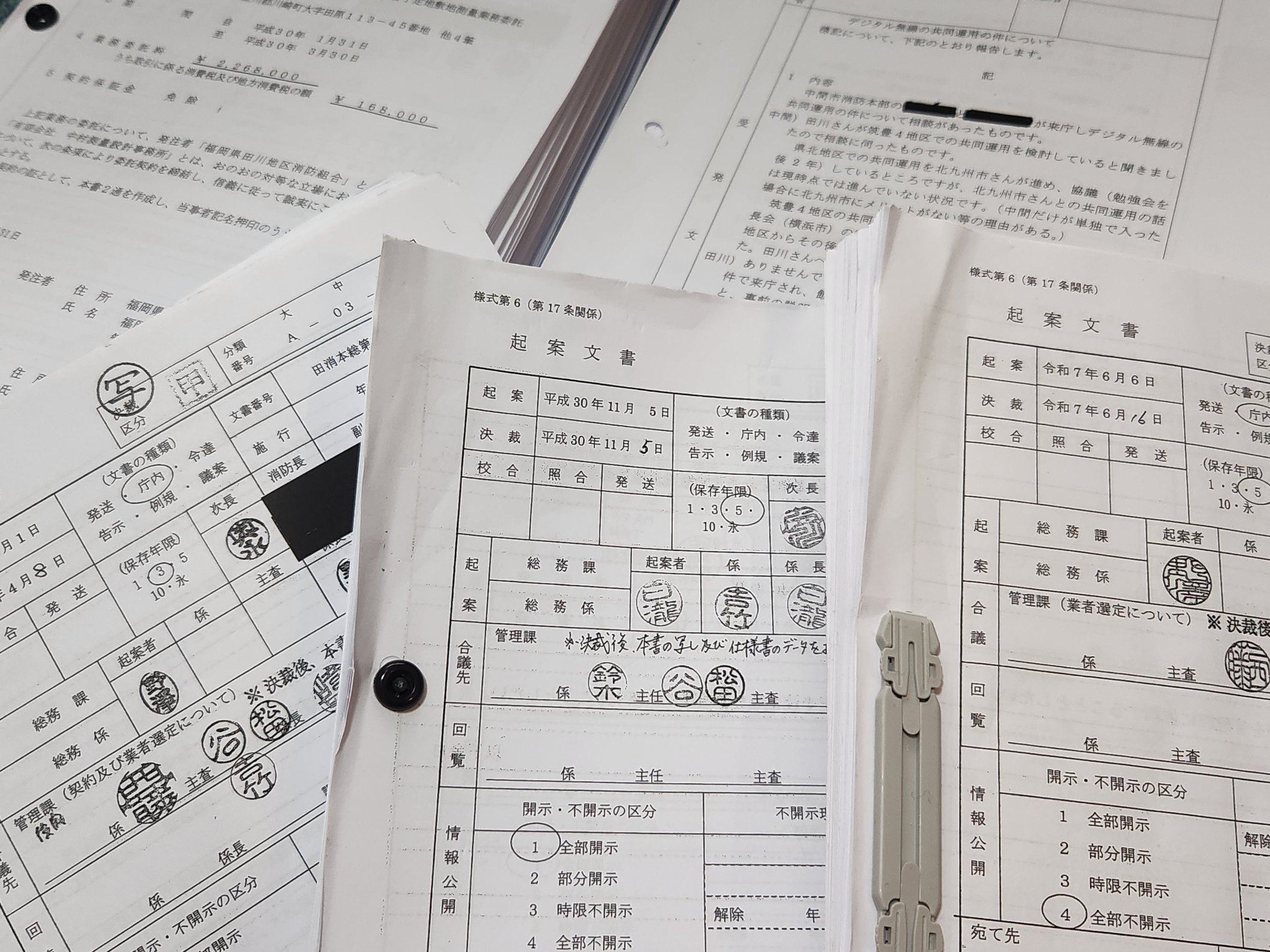 4 平成29年度から本年度までの間に、田川地区消防組合が発注した工事に関する設計、土工事、建築工事の業者選定過程を示す文書及び契約書。⇒開示決定期間を30日間延長